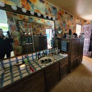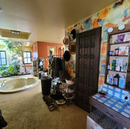 This total Primary Suite remodel was long overdue, the original design embodying a Latin-flavored, 80's cocaine fever dream. The homeowners longed for a space that brought a sense of peace and was more functional. The collaboration brought textures and layers in whites are balanced by the warmth of wood. Original Mexican doors are left in place, although the closet doors were removed and remounted with barn door hardware. Walls were moved to create more closet space (not shown) and the beige carpet throughout was replaced by Wire Brushed Reclaimed Teak. All casework designed by CPD.